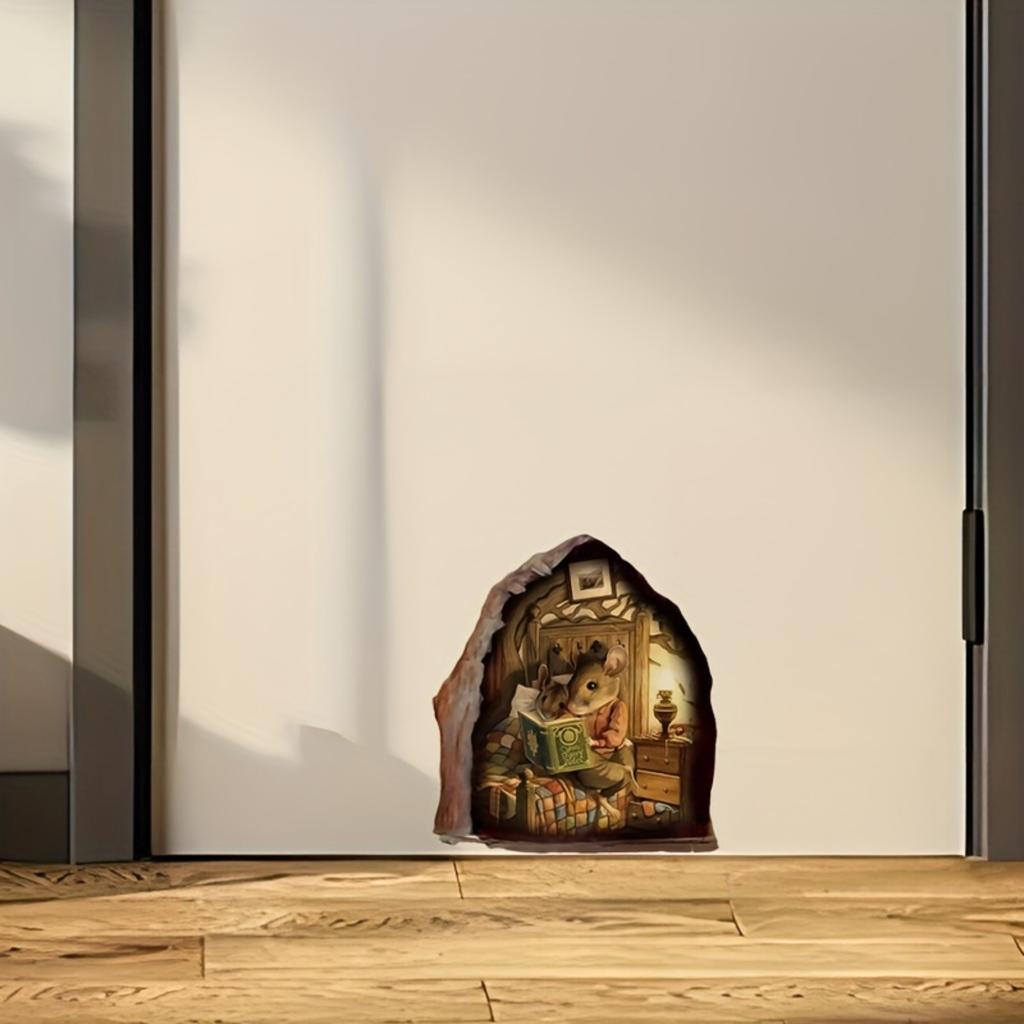 1PC 3D Mouse Hole Wall Sticker - Waterproof & Residue-Free, Cute Reading Mouse Design for Aesthetic Home Decor & Corner Reading Nook Decoration
