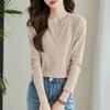Spring and Autumn Solid Color T-shirt for Women's Autumn Style Long Sleeve Base Thin Velvet Slim Fit V-neck Top