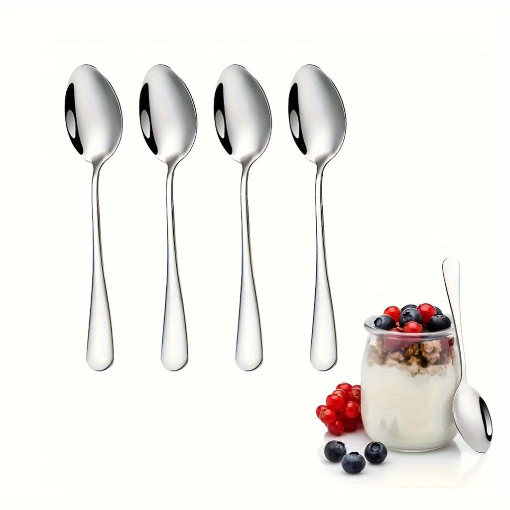Set of 4 Stainless Steel Spoons - 6.7" Mirror-Polished, Dishwasher Safe for Coffee, Ice Cream.