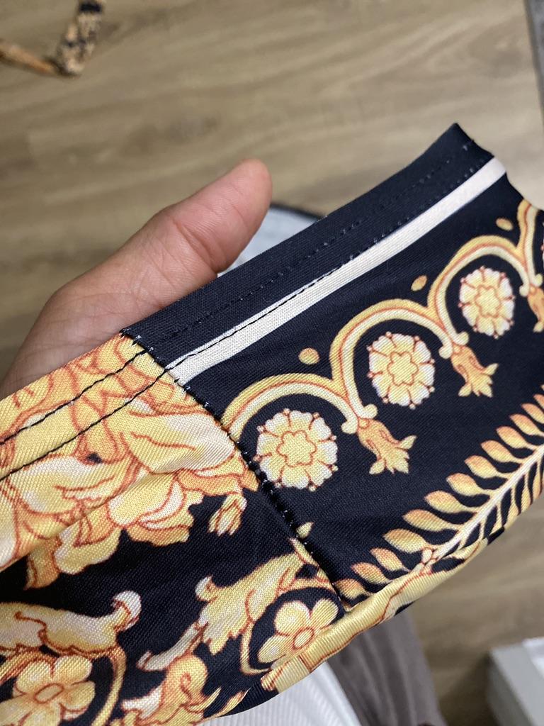 The fabric is wonderful, but the tailoring needs to be better, the neckline reaches the navel and requires correction in a studio.