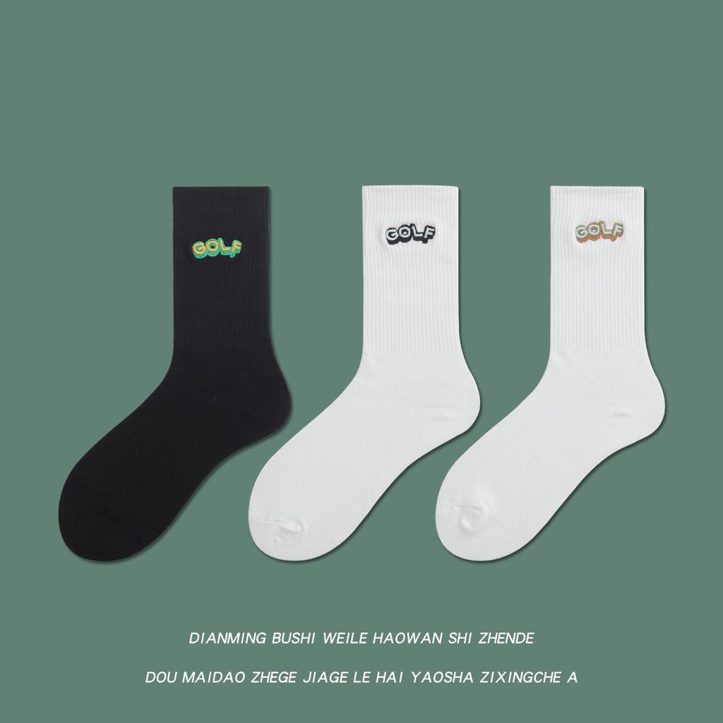 Golf Letter Embroidered Cotton Socks Black And White Wind Street Men And Women Couples Medium Stockings Sports Socks Tide