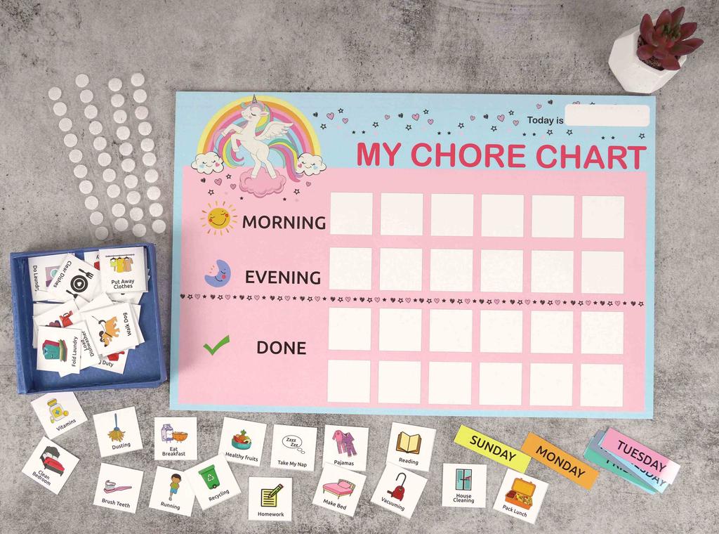 Inkdotpot Kids Daily Responsibility Checklist, to-Do List- Daily Routine- Chore Chart- Morning/Evening Checklist