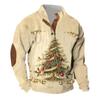 Christmas Print 3-button - Men's Stand Up Collar Sweatshirt, Outdoor Casual Hoodie With Buckle