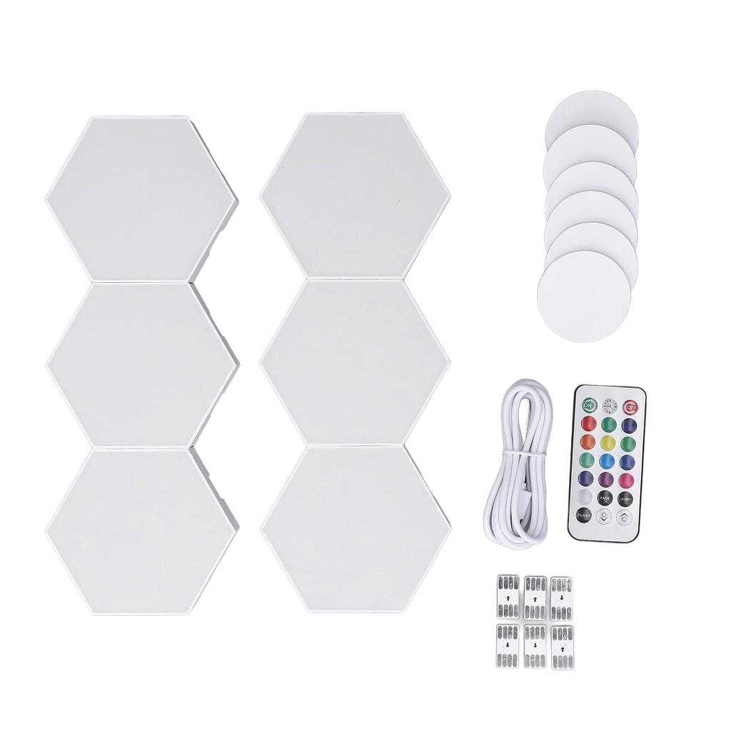 6 Set RGB LED Hex Wall Light Kit 13 Colors 3 Dynamic Modes Remote Control Hex Wall Light USB Powered