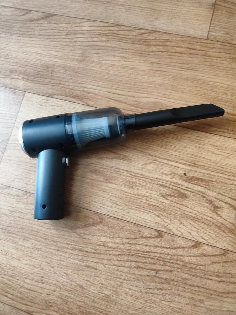 It's a children's vacuum cleaner, but I think it can reach all sorts of small crevices in the car. There's a good cone-shaped adapter, I think I can put a tube on it to get deeper.