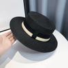 Braided Flat Top Straw Hat - UV Protection, Summer Vacation Style with Letter Logo for Men and Women