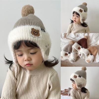 1 Piece Furry Cute Warm Toddler Beanie for Boy Girl Cartoon Bear Young Kids Crochet Bonnet Autumn Winter Warm Knitted Hat