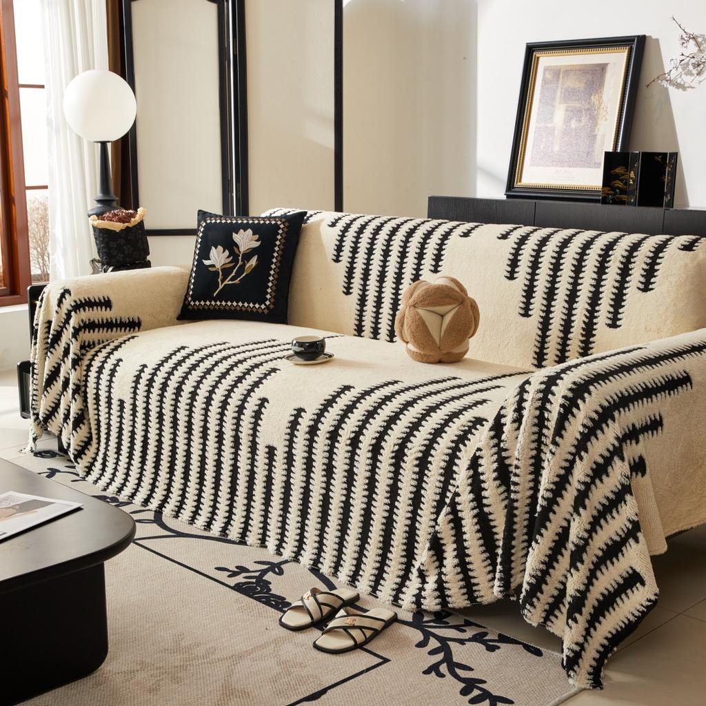 1PC Geometric Graded Wheat Jacquard Tuffed Fleece Soft Warm Sofa Towel Living & Bedding Room Leisure Relax Blanket, Sofa Cover