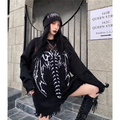 Gothic Style Punk Knitted Sweater Women Oversize Hip-hop Streetwear Mall Goth Skull Grey Fashion Pullover Jumper Tops
