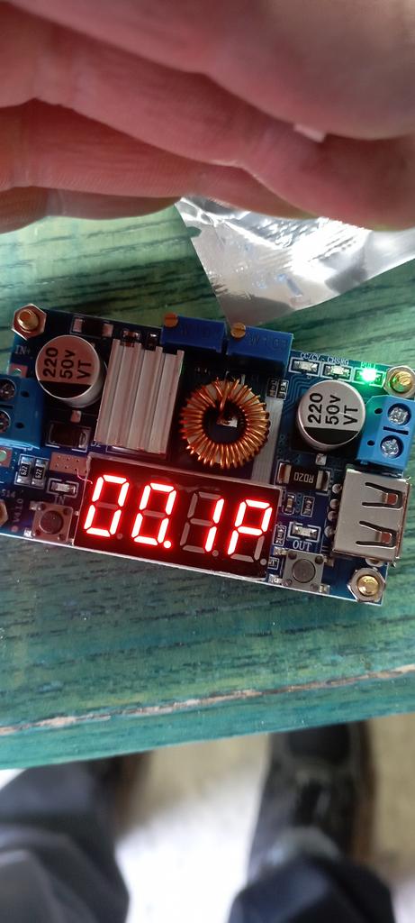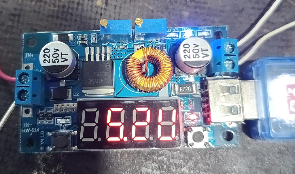 (2)Under no-load conditions, adjust the“Voltage potentiometer”so that the output voltage reaches the float voltage; (if to 3.7V rechargeable lithium battery, the output voltage can be adjusted to 4.2V)