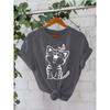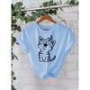 Cotton T-shirt Summer Short Sleeve Round Neck Cat Pattern Printed T-Shirts Women’s