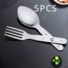 2-in-1 Foldable Fork 304 Stainless Steel Spoon Multifunctional Camping Silver Space-saving Portable Spoon & Fork for Camping