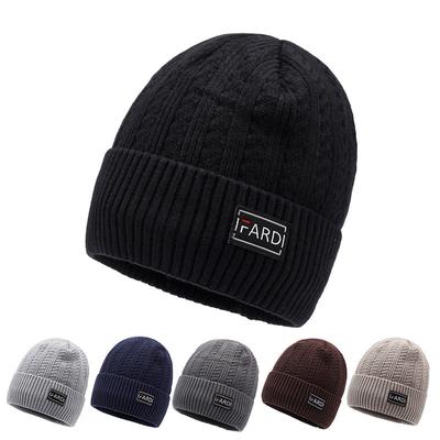 Winter Velvet Knitted Hat Men's Thick Warm Coldproof Hat Letter Wool Hat