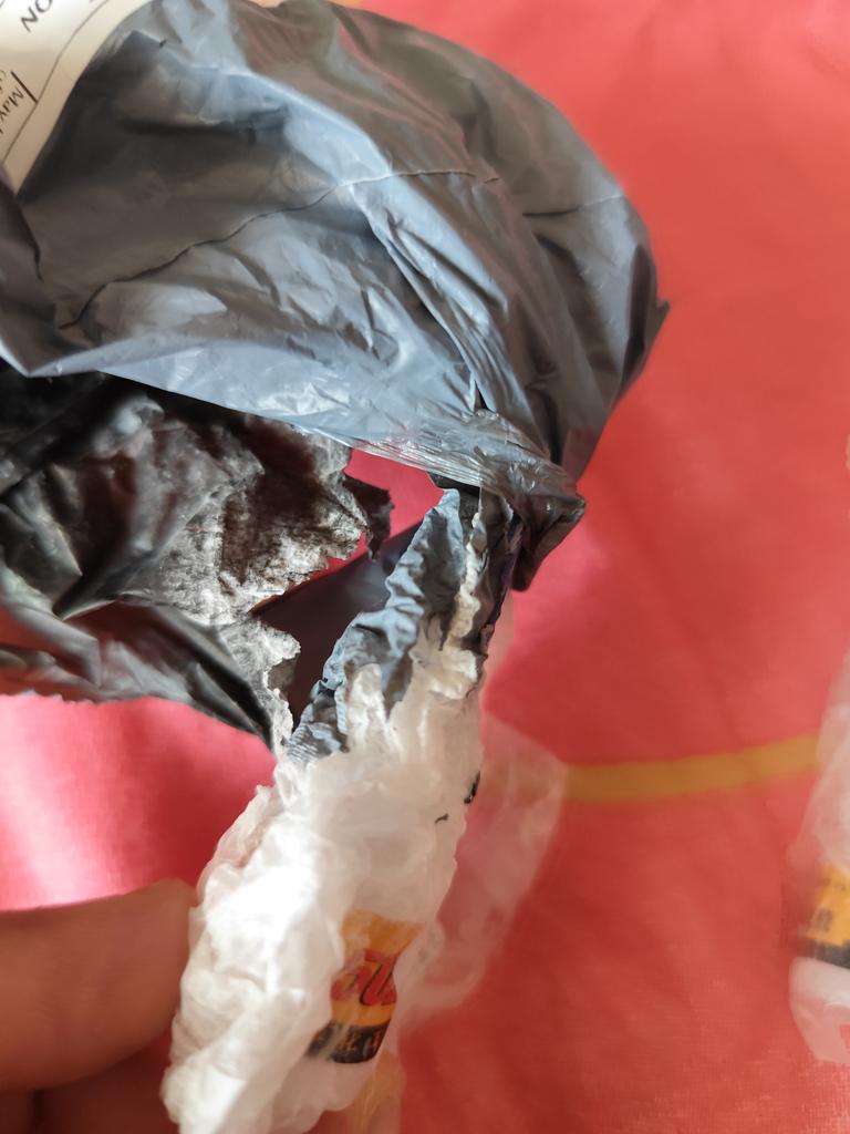 Received in a combined parcel. 1 bottle is damaged.