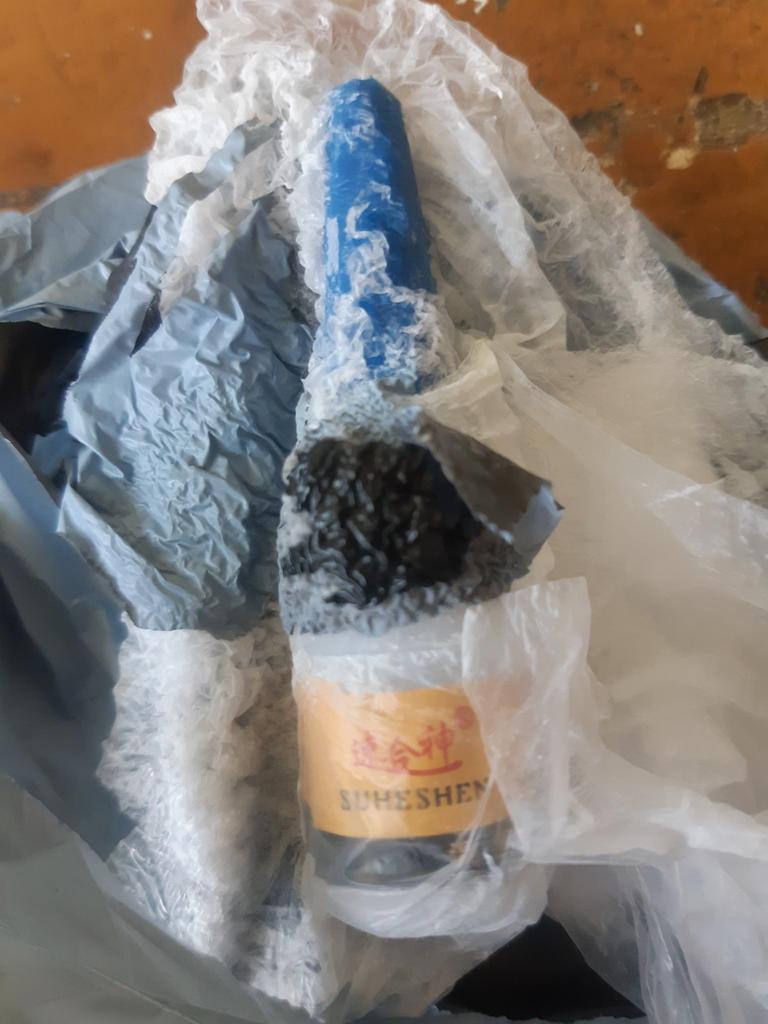 Damaged bottle.