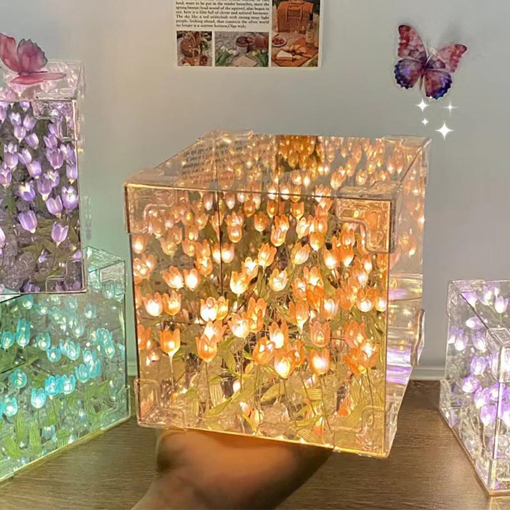 Creative Diy Tulip Flower Sea Cube Three-Dimensional Small Night Lamp Material Package for Girlfriend Couple Girlfriends