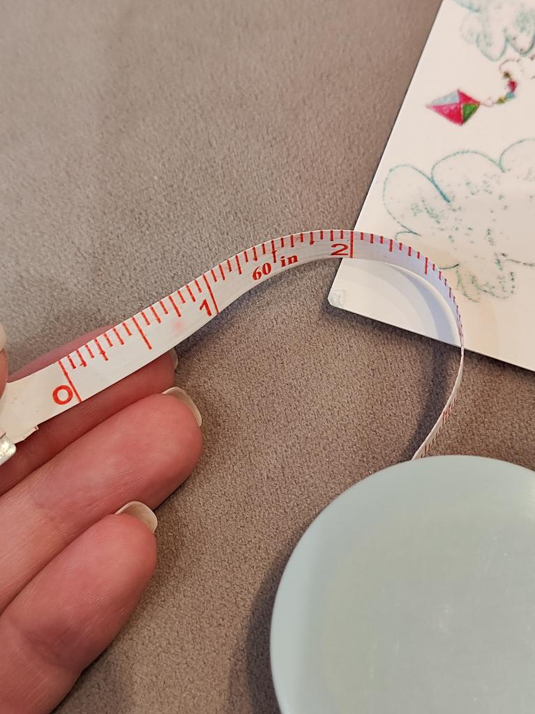 Tape Measure Made of plastic Size up to 1.5 60 inches Suitable for measuring the circumference of the entire body You can also measure other things with it.. The product is very good and useful. Highly recommended to buy It arrived to me with fast and secure shipping.