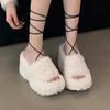 Fur Platform Wedges Women Slippers High Heels Shoes 2025 Trend Slingback Open Toe Short Plush Flip Flops Pumps Mujer Zapatos