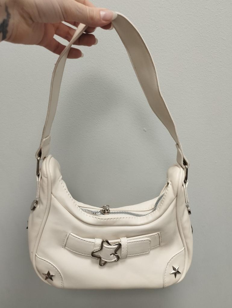 Vintage Korean Casual Cute White Star Shoulder Underarm Tote Bag Ladies Sling Bags Leather Zip Purses Handbags Women