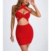 Women's Short Skirt Summer Hollow Tie Neck Bag Hip Sexy Dress