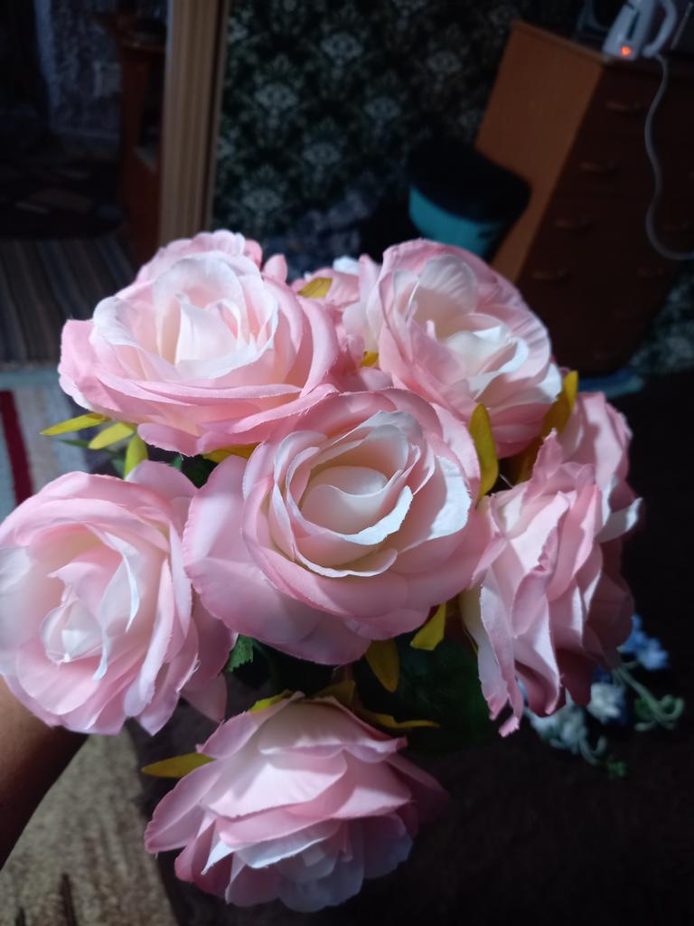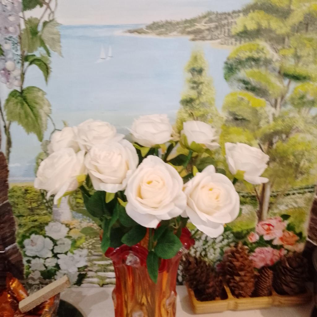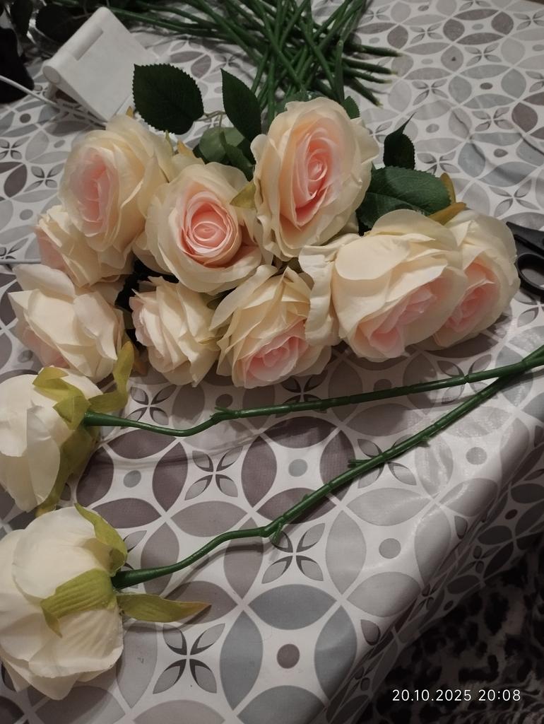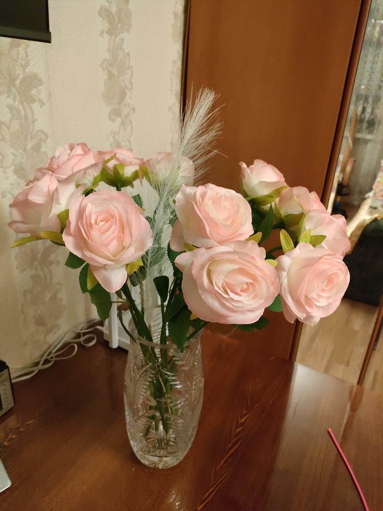 Beautiful roses, like real ones, a little crumpled, but they straighten out well, they fit the tall vase, thank you