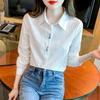 Women's Blue Shirt Autumn New Style Versatile Embroidered White Shirt Long Sleeve Top