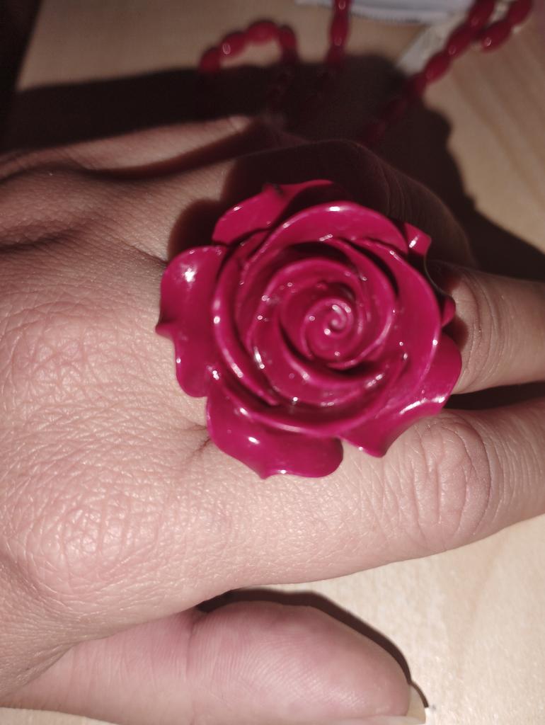 Elegant Red Rose Flower Ring For Women, Adjustable Open Band, Shiny Glamorous Style Couple's Ring