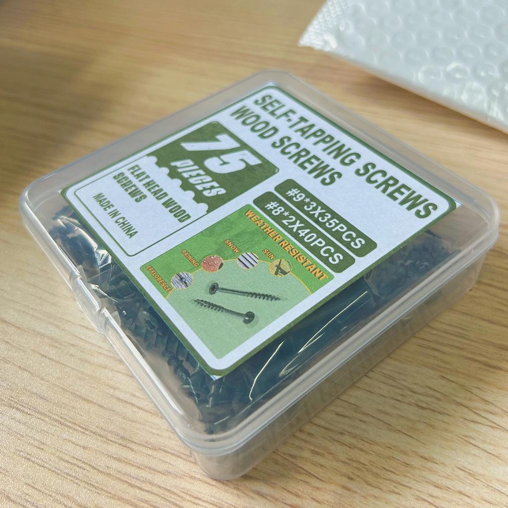 75 Pieces Green Screws, Self Tapping Screws Wood Screws, Countersunk Smooth Shank, #9*3/#8*2 Home Improvement Best Choice