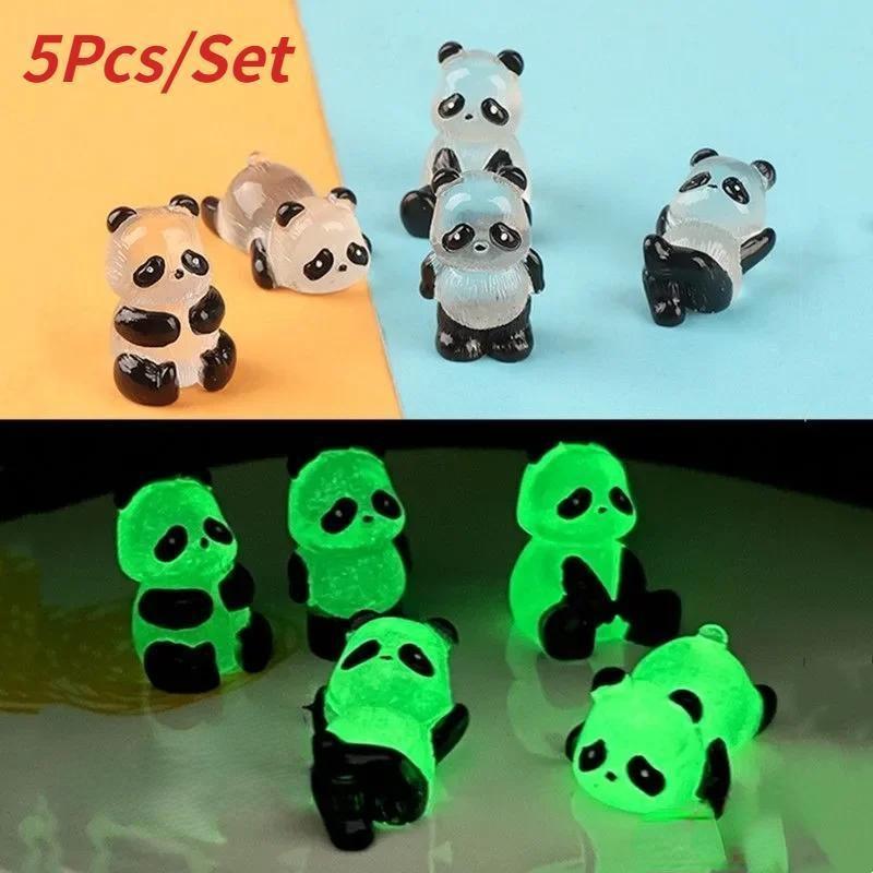 Glowing Panda Mini Figurines Miniature Panda Micro Landscape Ornament Glowing In Dark Miniature Flower Potted Decor(5pcs/set )