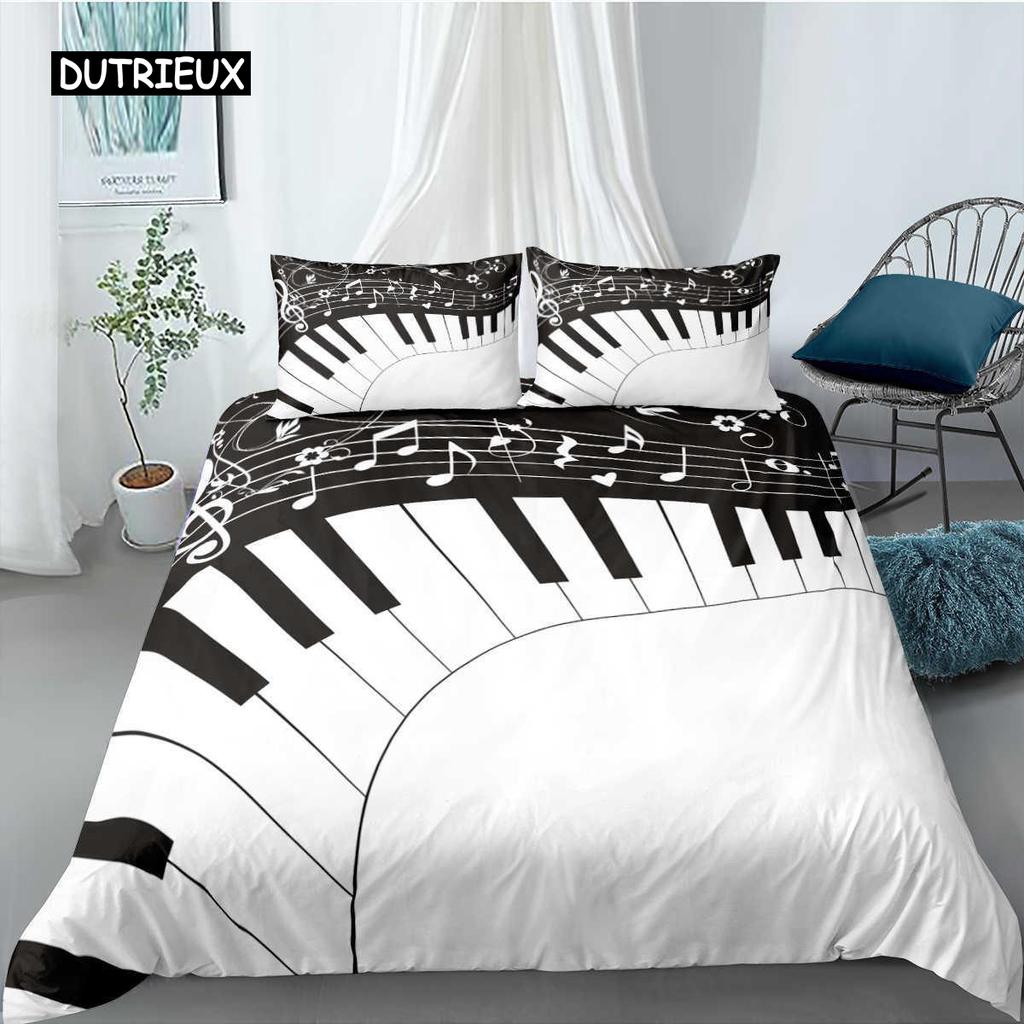 Piano Duvet Cover Set Black Piano Keyboard Music Note Kids Bedding Set Music Theme King Size 2/3pcs Soft Twin Comforter Cover