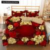 Golden Red Rose King Queen Duvet Cover Romantic Floral Bedding Set Valentine's Day Flowers Quilt Cover Polyester Comforter Cover