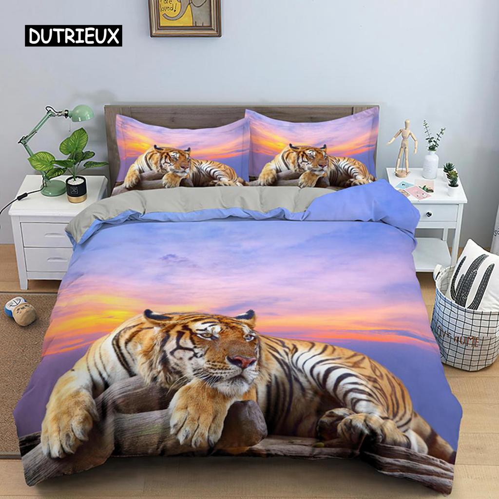 Tiger Duvet Cover Set King Size Wild Theme Bedding Set Animal Pattern Comforter Cover Animal Theme Sunset Polyester Quilt Cover