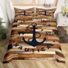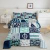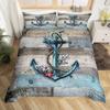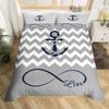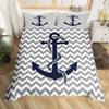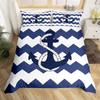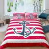 Nautical Anchor Pattern Duvet Cover Set King,Geometric Stripes Ocean Adventure Theme Quilt Navy Blue and Red Bedding Set 3pcs