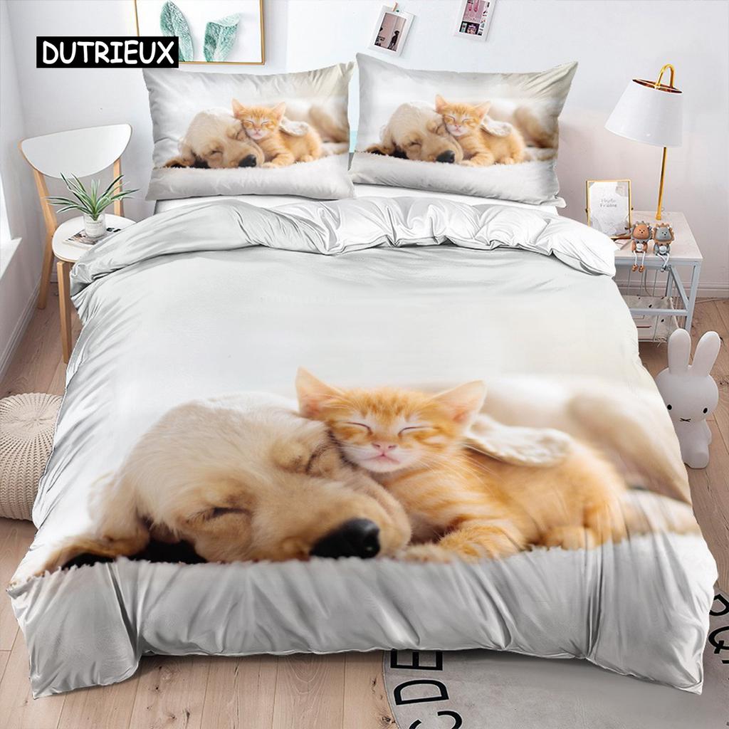 Cute Cat Dog Duvet Cover Bedding Set Animal Pet Duvet Cover Bedding Cover 2/3pcs Comforter Cover Home Decoration Women Children