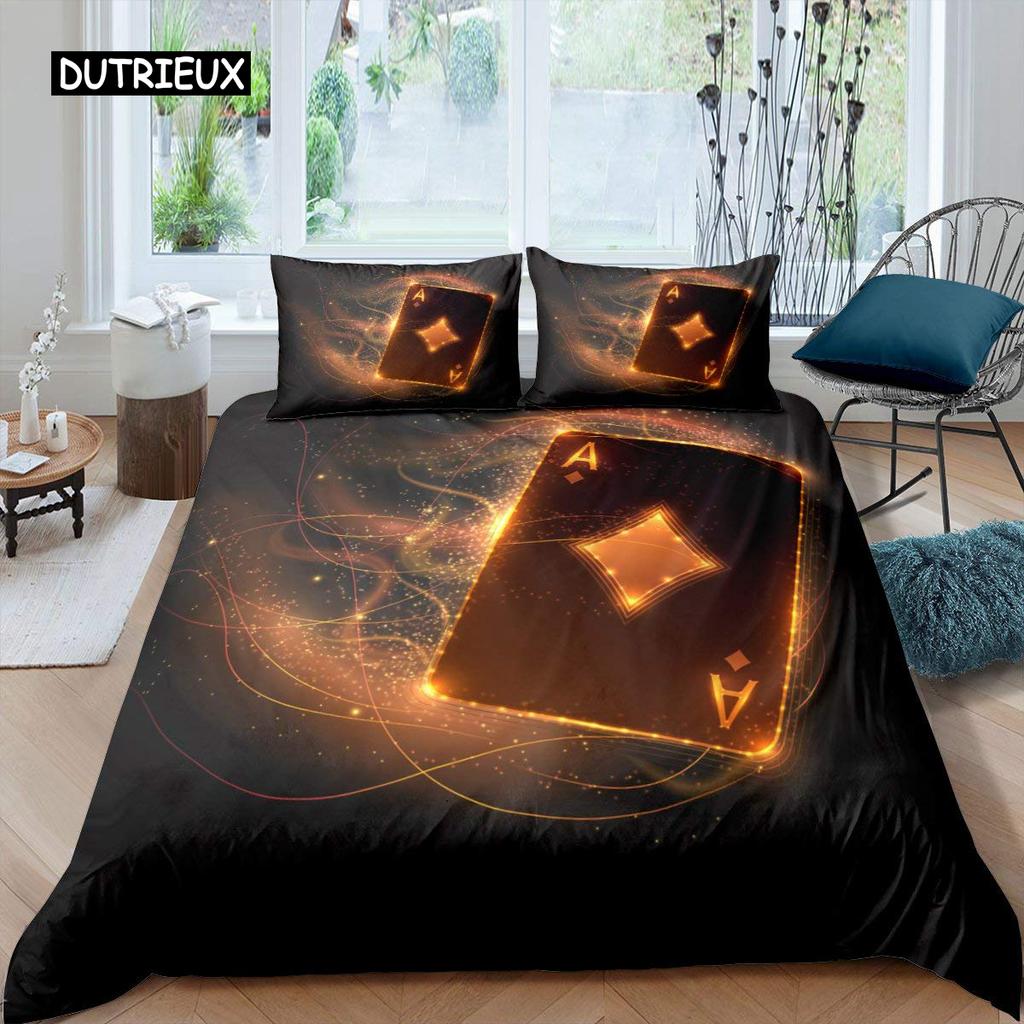 Poker King Queen Duvet Cover Modern Card Game Bedding Set Gamer Playing Comforter Cover Gambling Athletics Polyester Quilt Cover