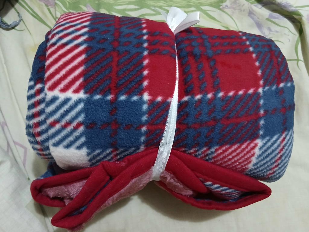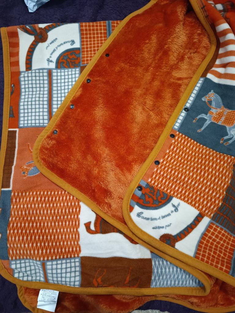 Cool little blanket. You can cover yourself with it and throw it over yourself, four buttons. The color matches the image. Soft, cozy