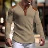 3D Breathable Men's Casual Sweatshirt Autumn V-Neck Top with Button Fashion Men's T-Shirt