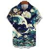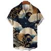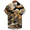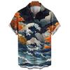 Summer Fashion Sutra of Mountains and Seas Ukiyoe Wave Print Men's Short Sleeve Shirts Casual Daily Street Trend Tops Oversized