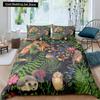 Black Owl King Queen Duvet Cover Moon Safari Bird Animal Bedding Set Lovely Wildlife Quilt Cover Grey Polyester Comforter Cover