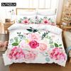 Pink Flower Duvet Cover and Pillowcases Set King Size 220x240 Double Bed Single 3D Queen Bedding Sets Pink Full Twin Quilt Linen
