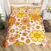 Retro Hippie Flower Duvet Cover Rainbow Floral Bedding Set Polyester Cartoon Ghost Comforter Cover Set 60S 70S Groovy Bedclothes