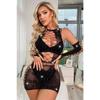 Women's Red Stone Mini Nightgown Fantasy Body Stocking With Gloves