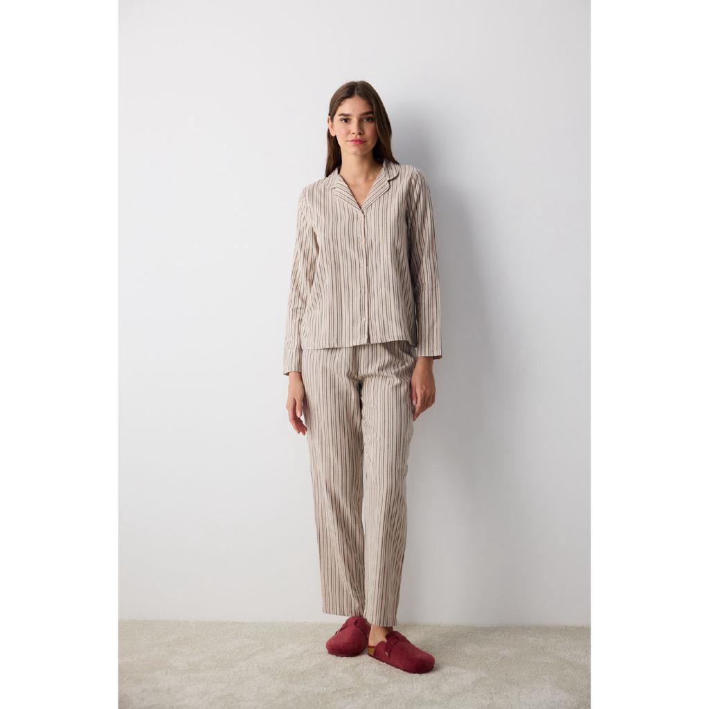Cotton Emma Striped Gray Shirt Trousers Pajama Set
