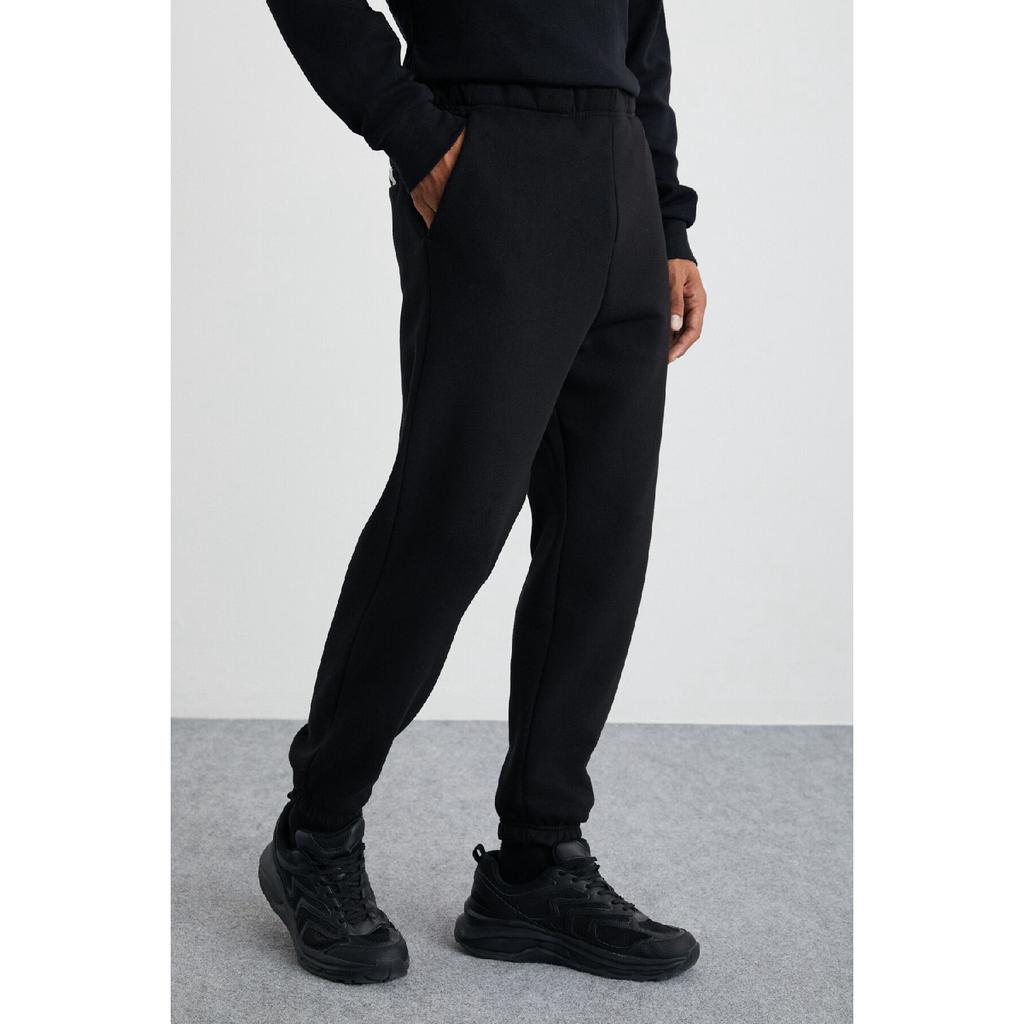 Burnham Men's Organic Fabric Fleece Inside Comfortable Cut Elasticized Jogger Black Sweatpants