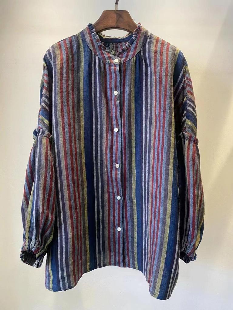Johnature Japanese Fungus Stand-up Collar Shirt Women Autumn Retro Loose Versatile Raglan Sleeve Tops