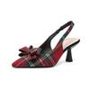 Women's Plaid Slingback Kitten Heels Closed Pointed Toe Bow Tie Slip On Work Pumps Ankle Strap Stiletto Formal Party Wedding Dress Shoes for Women