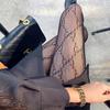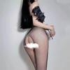 Seductive Black Fishnet Stockings with Bow and Letter Details - Plus Size European and American Styles