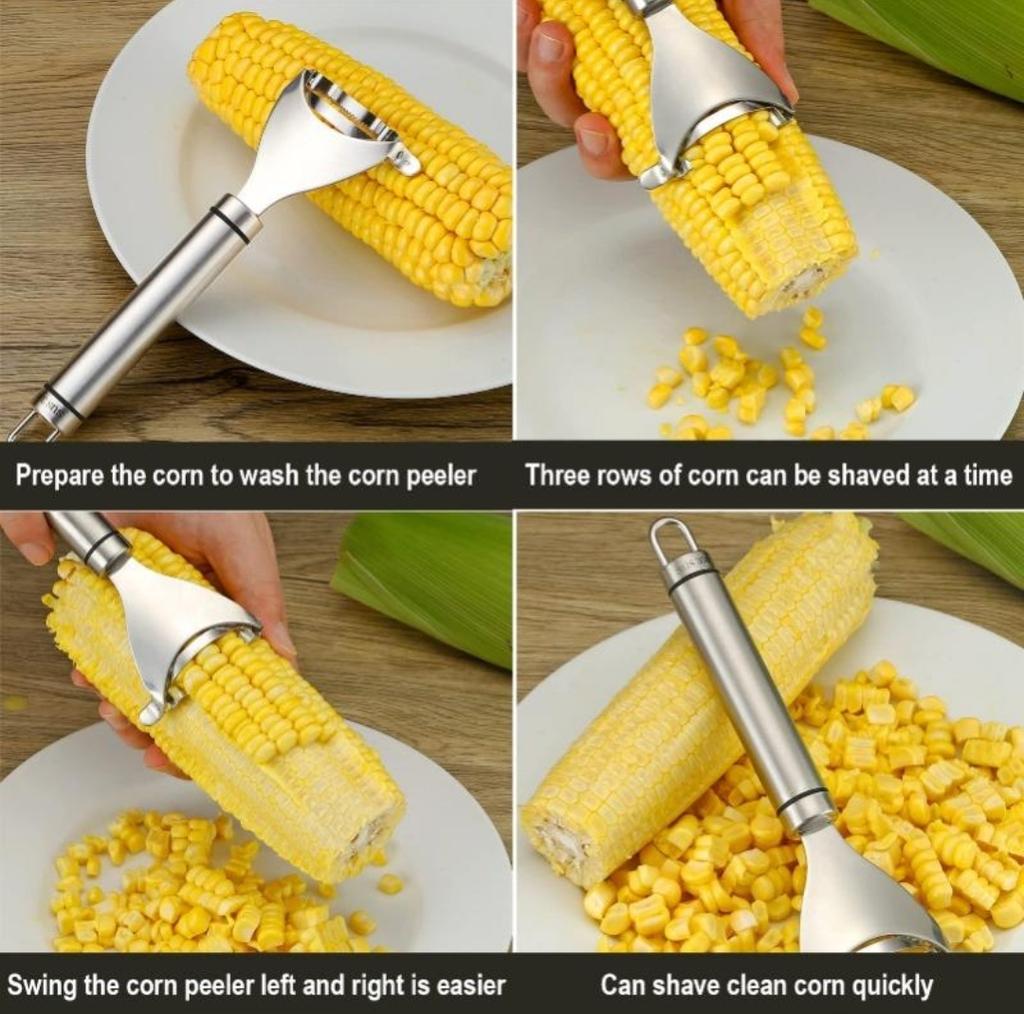 How to clean corn? Do you love corn, but you don't like spending time and energy on cleaning it? Do you want to enjoy its fragrant and juicy kernels, but you don't know how to separate them from the cob? Do you dream of preparing delicious and healthy dishes from corn, but the process of cleaning it discourages you?? Many corn lovers face such problems. Cleaning the cobs is a very long and laborious process, during which you can even injure your fingers and break inconvenient kitchen appliances. Some use ordinary knives for this, but because of this, the corn loses a lot of juice and becomes less tasty.. A special knife for cutting corn kernels – convenient and reliable You need a special corn knife. Its design and shape allow you to effortlessly remove the corn kernels from the cobs, leaving them whole and undamaged.. The corn knife has the following advantages: Reliability - the corn husking knife is made of stainless steel, so it will not bend, break or rust over time. Convenience – the corn kernel knife has an ergonomic handle, making it easy to hold. Efficiency - thanks to the special shape of the blade, which repeats the curve of the ear, you can cut the grains in one motion without damaging them at all. A corn kernel knife will become one of your favorite kitchen tools. With its help, you can prepare any corn dish and get nothing but pleasure from it.. I recommend.👍