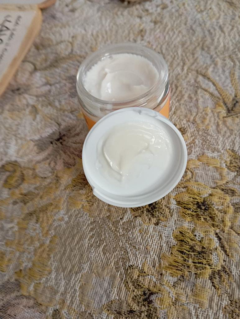 purified water, caprylic/capric triglyceride, glycerin (vegetable), coco-caprylate/caprate, cetyl alcohol, cetearyl olivate, shea (butyrospermum parkii) butter*^, sorbitan olivate, stearyl alcohol, glyceryl stearate citrate, cetearyl alcohol, castor (ricinus) communis) seed oil, hydrogenated vegetable oil, orange (citrus aurantium dulcis) peel oil, ascorbic acid, papaya (carica papaya) fruit extract, citrus junos fruit extract, lactic acid, sodium hyaluronate, tocopherol, allantoin , sodium pca, hydroxyproline, l-proline, panthenol, sodium starchioctenyl succinate, soybean (glycine soja) oil, silica, ethylhexylglycerin, xanthan gum, glyceryl caprylate, triethyl citrate, benzoic acid, phenoxyethanol.*certified organic ingredients. ^fair trade ingredients