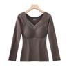 Women's Double-Sided Velvet Self-Heating Top with Fixed Cups, Thickened Waist, Long Sleeves - Warm Autumn Shirt.